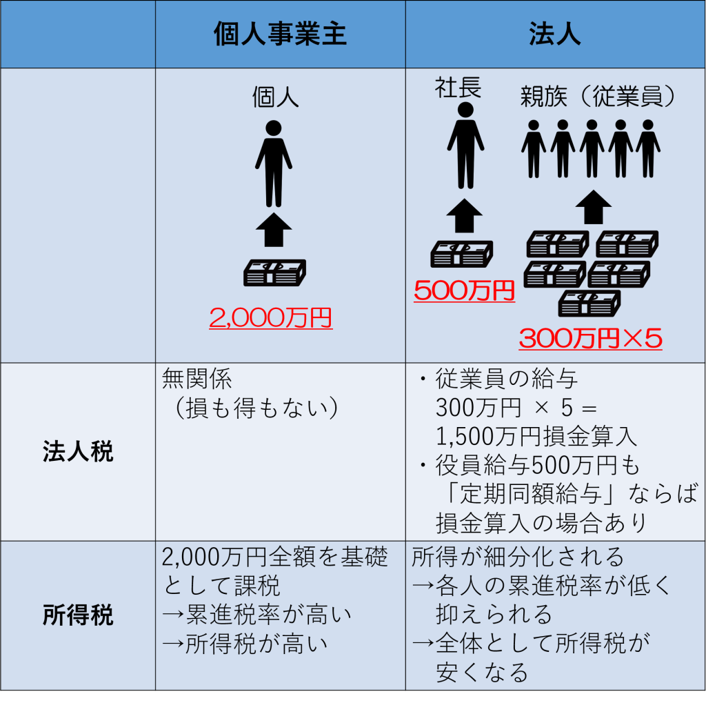 • 経費計上の自由度が高い(役員報酬、退職金、生命保険など)