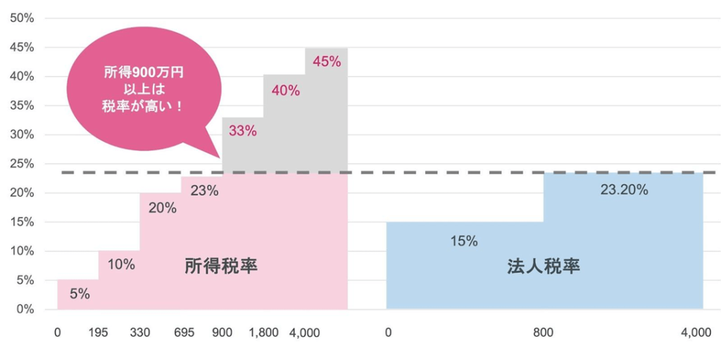 👉 利益が600〜800万円以上になると法人化の節税効果が出やすい。